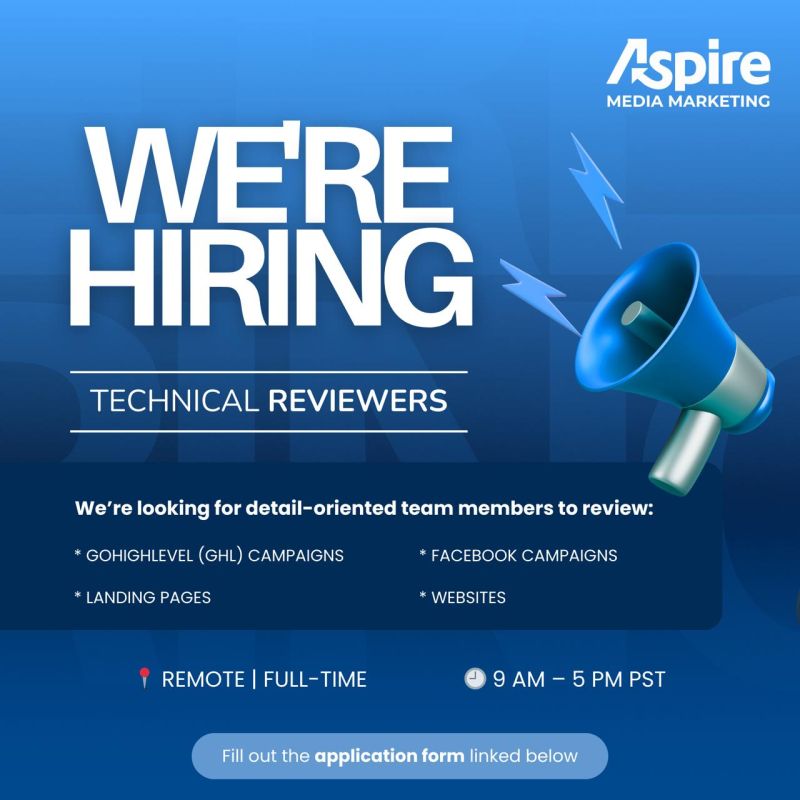 At Aspire Media Marketing, we’re a leading dental marketing agency serving 200+ clients across North America. We pride ourselves on delivering flawless marketing campaigns, and we’re looking for Technical Reviewers who can help us maintain the highest standards. If you have an eye for detail and love to catch mistakes others might miss, we want you on our team!